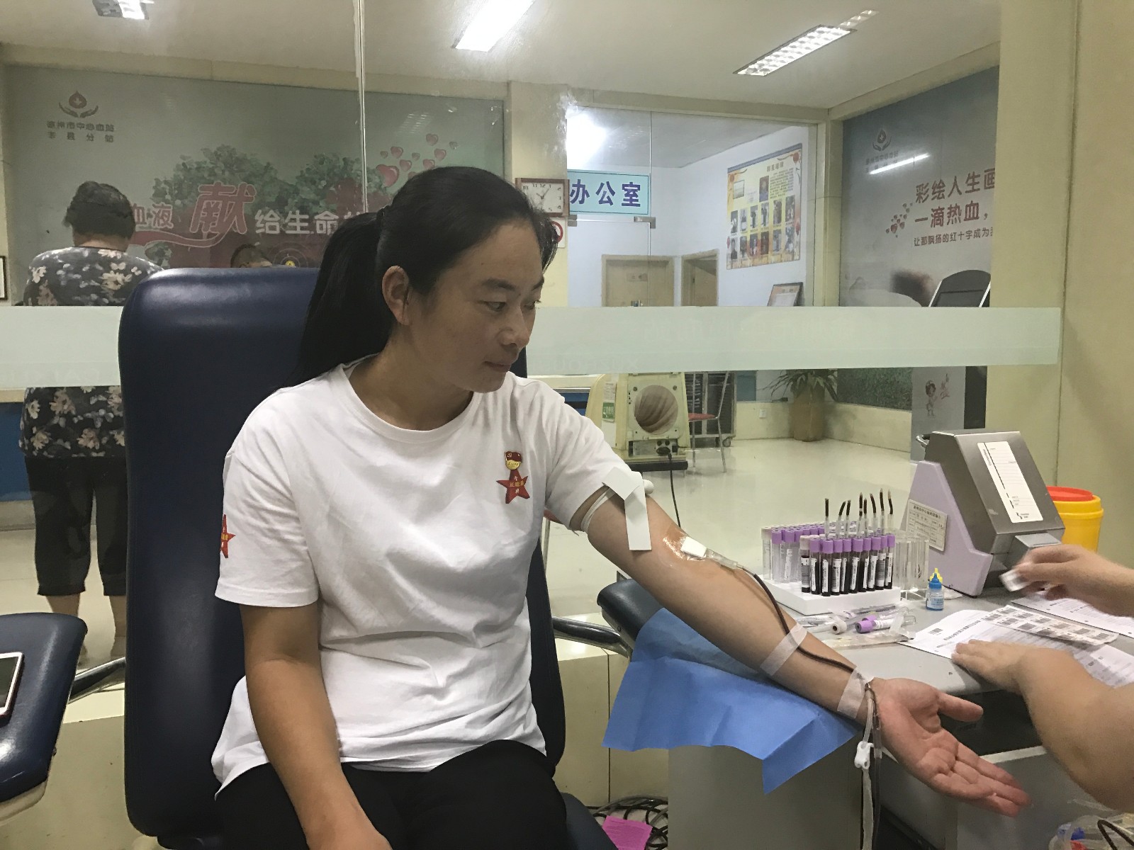 正能量公益8月13日丰县电(张丹丹 高荣光) 8月13日上9时,江苏省丰县人民医院对面的献血屋前人头攒动,一群穿着正能量公益服装、戴着党徽的献血者格外引人注目,他们就是丰县正能量公益发展中心的党员志愿者。30名党员志愿者在党支部书记袁庆堂、理事长万利忠的带领下,他们伸出手背为四川九寨地震灾区无偿献血12000CC,救助那些在灾难中受伤的同胞,以实际行动支援灾区。