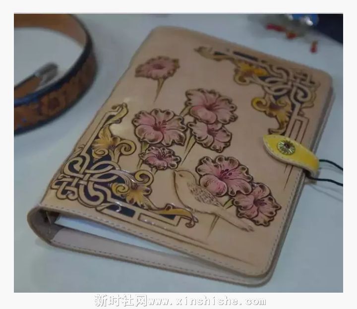 所谓皮雕,就是以旋转刻刀及印花工具,在皮革上刻划 、敲击、推拉、挤压,从事创作,以制作出各种表情、深浅、远近等感觉及效果,或是平面山水画或缀以装饰图案的形物,使图案纹样在皮革表层雕琢出凹凸的层次及纹饰;因此,在皮革上雕出凹凸不同层次的平面作品,统称皮雕。运用的技巧与竹雕、木雕等技法类似。