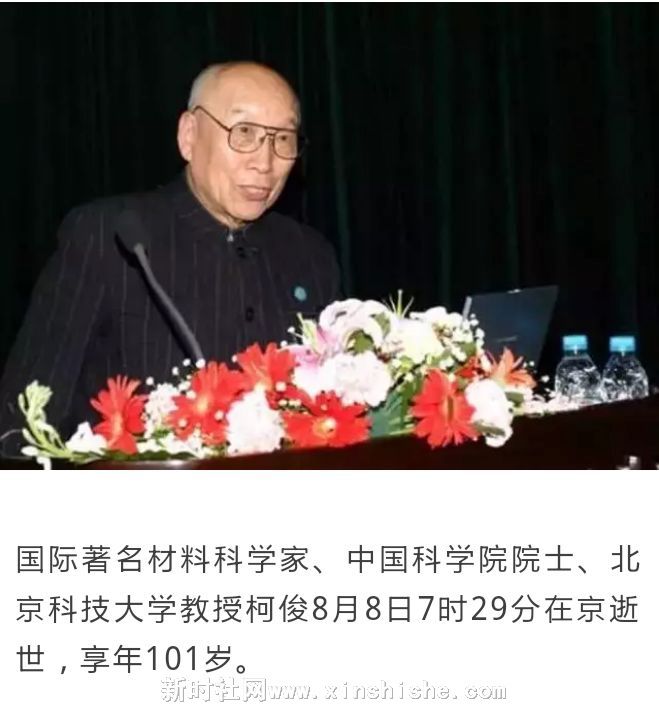 国际著名材料科学家、中国科学院院士、北京科技大学教授柯俊8月8日7时29分在京逝世,享年101岁。