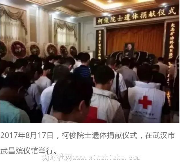 2017年8月17日,柯俊院士遗体捐献仪式,在武汉市武昌殡仪馆举行。