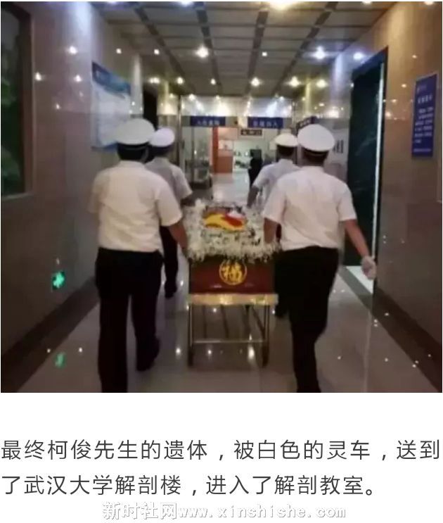 最终柯俊先生的遗体,被白色的灵车,送到了武汉大学解剖楼,进入了解剖教室。