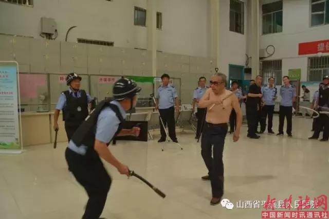 平遥县公安局南城派出所康建胜指导员带领两名公安干警对医院反恐实战演练作了具体指导。