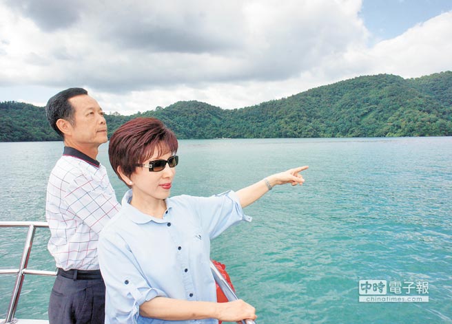 洪秀柱日前走访日月潭,与游艇业者谈心。业者诉苦表示,目前载客量只剩三分之一。自己所在公司有3艘船,当天只有1艘出航1趟,陆客减少,连带收入也减少,而台当局又要加征娱乐税及营业税,实在吃不消。(图片来源:台湾《中时电子报》)