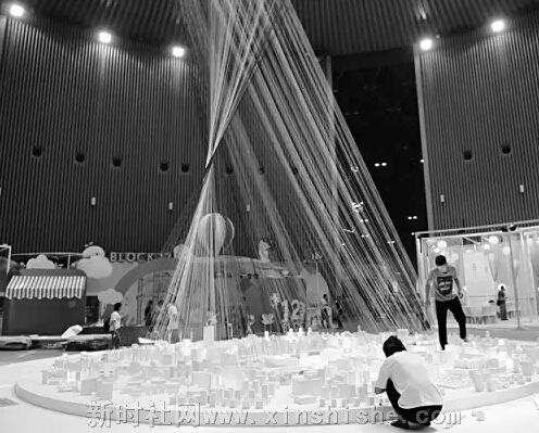 第四个拍照地点,大家可以移步到展厅最内层展馆的中心区域,由空中垂悬的千条丝线组合成七彩瀑布,营造出了气韵贯通、直冲天际的展示效果。此外,七彩瀑布当中还展示了我省11市各具特色的城市地标模型,名为《印象·城市·文化》。据了解,这是太原工业学院设计艺术系师生们的作品,借此文博会来呈现全省城市风貌,别有一番意味在其中。