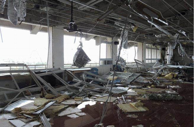 台东县高普考试场东海中学遭强台侵袭一片狼藉。(图片来源:台湾《中时电子报》)