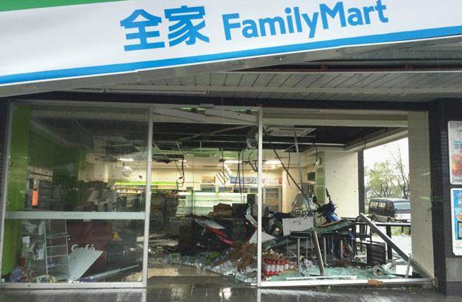 超商禁不住强风吹袭,玻璃门碎裂,店内满目疮痍损失超过百万元。(图片来源:台湾《中时电子报》)