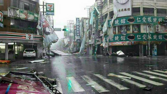 尼伯特台风狂袭,台东市闹区有如被炸弹轰炸过的废墟。(图片来源:台湾《中时电子报》)