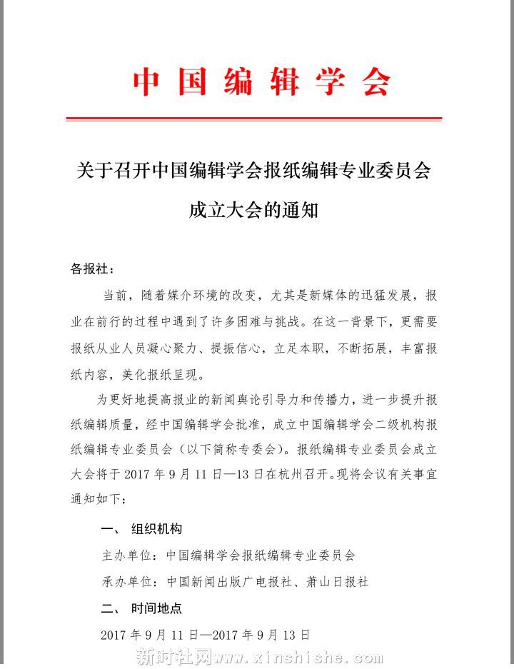 >> 关于召开中国编辑学会报纸编辑专业委员会成立大会的通知