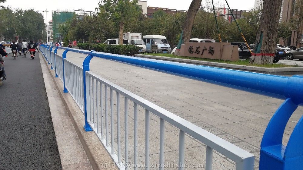 (新时社网杨等平报道)最近,细心的市民会发现市区多条道路安装了人行道护栏,护栏上还做着精美的宣传画。目前,河北省会石家庄部分路段的安装工作正在进行。这些人行道护栏白蓝相间、整洁美观,让人眼前一亮。