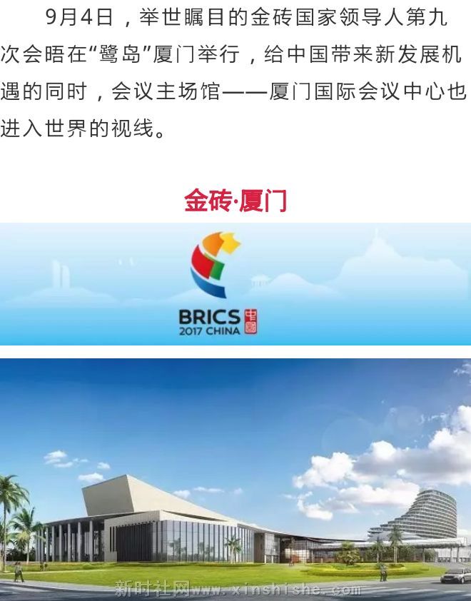 9月4日,举世瞩目的金砖国家领导人第九次会晤在“鹭岛”厦门举行,给中国带来新发展机遇的同时,会议主场馆——厦门国际会议中心也进入世界的视线。