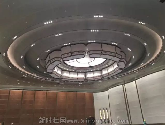 在凤凰厅上方,现代感十足而又凝聚典雅之气的白色吊顶令人惊叹。别小看这个吊顶,它可不简单。这是国家级非物质文化遗产传承人朱炳仁、朱军岷团队,为金砖会场打造出大气磅礴的铜艺世界。