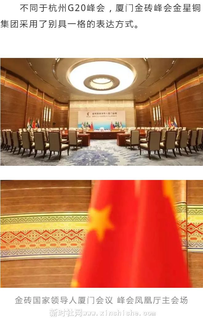 不同于杭州G20峰会,厦门金砖峰会金星铜集团采用了别具一格的表达方式。