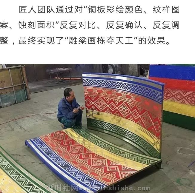 匠人团队通过对“铜板彩绘颜色、纹样图案、蚀刻面积”反复对比、反复确认、反复调整,最终实现了“雕梁画栋夺天工”的效果。