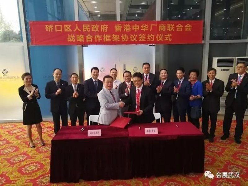 9月21日上午,2017香港时尚产品博览·武汉工展会在汉开幕。湖北省人民政府副省长童道驰、香港中联办经济部副部长刘亚军、香港工业贸易署署长甄美薇、香港中华厂商联合会永远名誉会长施荣怀等出席开幕式,省商务厅副厅长黄谋宏出席开幕式并见证武汉市硚口区政府与香港中华厂商联合会签订合作框架协议。