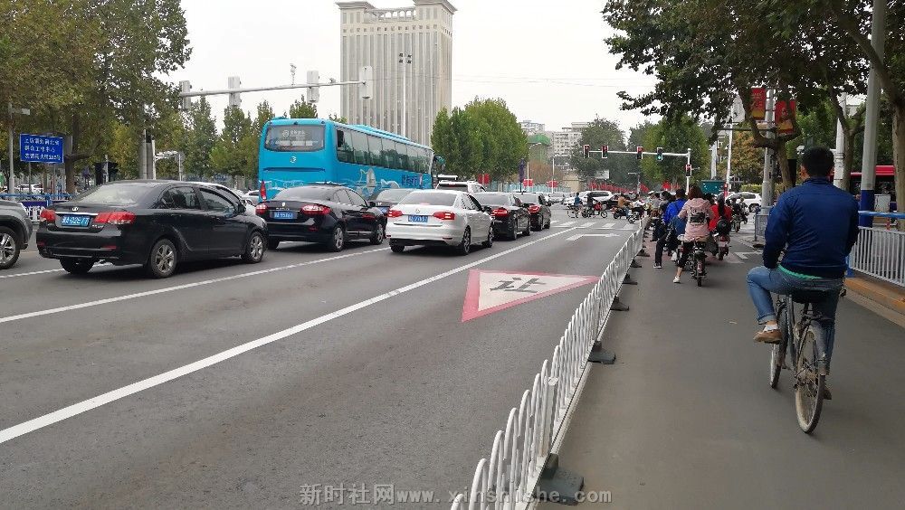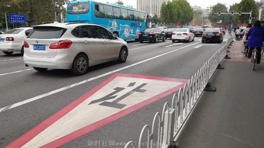 (新时社网杨等平报道)近日在河北省会石家庄的一些主要道路的路口右转车道,增加了白底红字长三角形的让行标志。