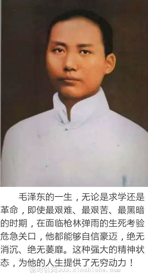 毛泽东的一生,无论是求学还是革命,即使最艰难、最艰苦、最黑暗的时期,在面临枪林弹雨的生死考验危急关口,他都能够自信豪迈,绝无消沉、绝无萎靡。这种强大的精神状态,为他的人生提供了无穷动力!