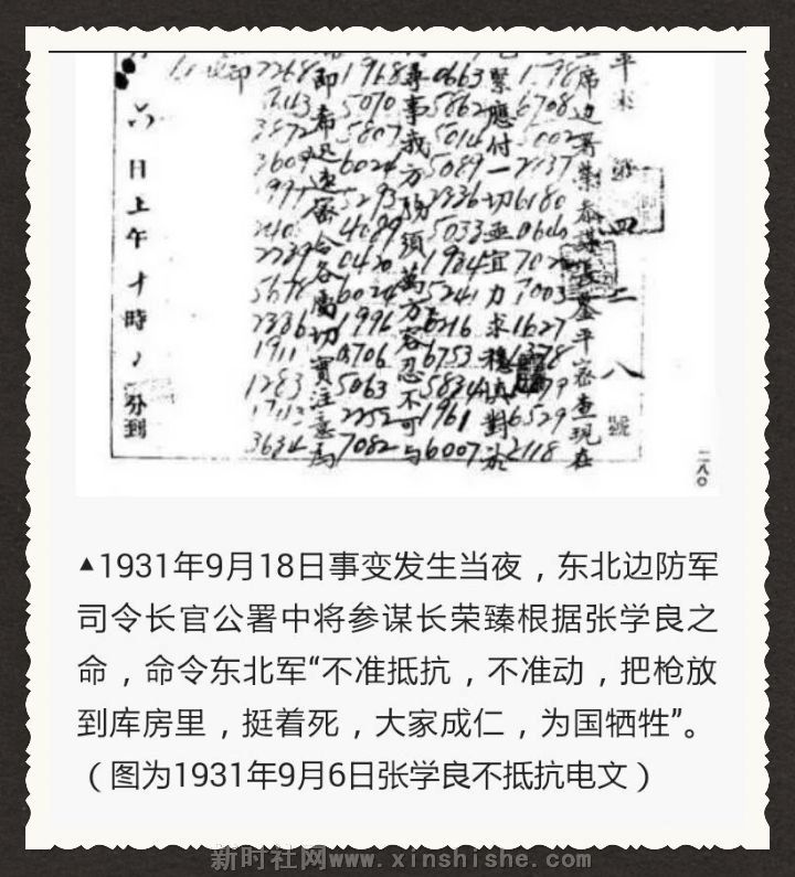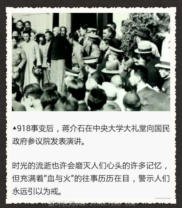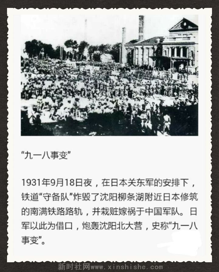 特约记者趙志丹/文献报道:1931年9月18日,“九一八”事变爆发。战争长达14年,14年间,大片国土沦陷,3500万同胞伤亡。日本驻中国东北地区的关东军按照精心策划的阴谋,由铁道“守备队”炸毁沈阳柳条湖附近的南满铁路路轨,并嫁祸于中国军队。这就是所谓的“柳条湖事件”。日军以此为借口,突然向驻守在沈阳北大营的中国军队发动进攻。由于东北军执行蒋介石的“不抵抗政策”,当晚日军便攻占北大营,次日占领整个沈阳城。日军继续向辽宁、吉林和黑龙江的广大地区进攻,短短4个多月内,128万平方公里、相当于日本国土3.5倍的中国东北全部沦陷,3000多万父老成了亡国奴。这就是震惊中外的“九一八”事变。