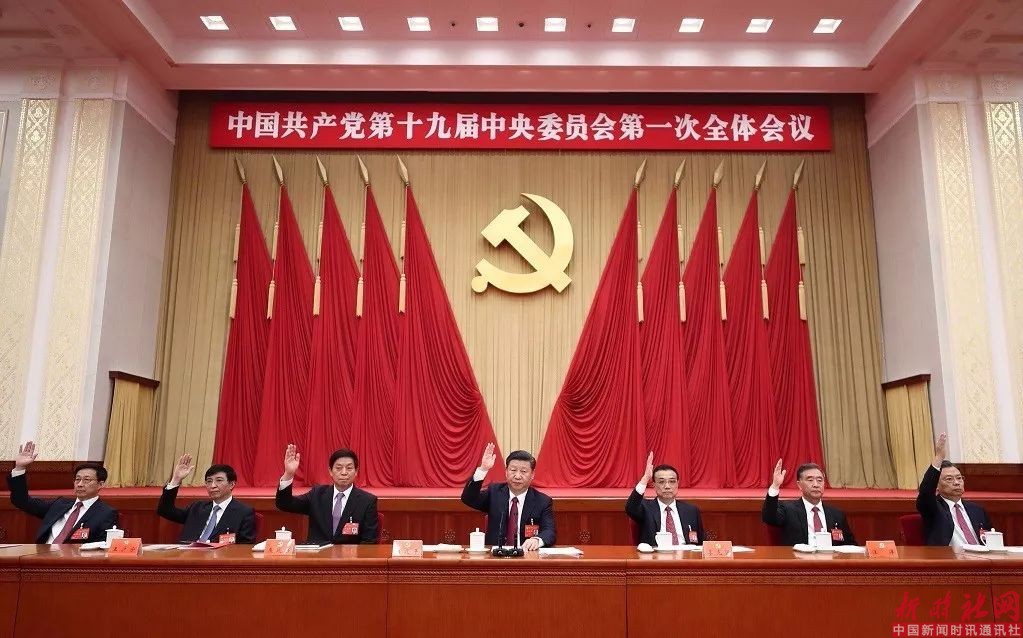 10月25日,中国共产党第十九届中央委员会第一次全体会议在北京人民大会堂举行。习近平、李克强、栗战书、汪洋、王沪宁、赵乐际、韩正等出席会议。 新华社记者 鞠鹏 摄