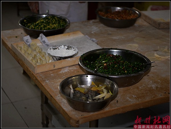 水饺店的师傅在抓紧给我们包水饺,不能耽误中午老人的午餐。
