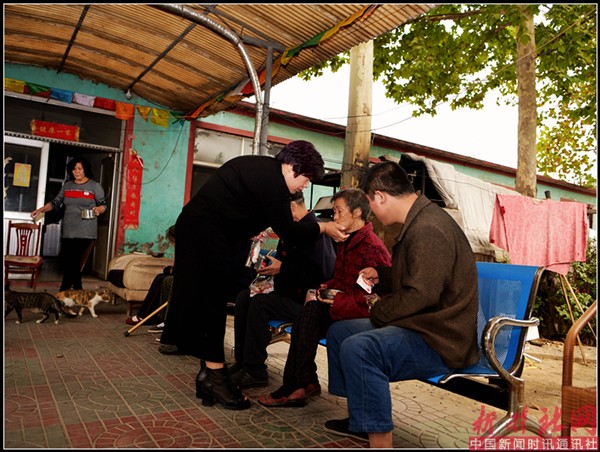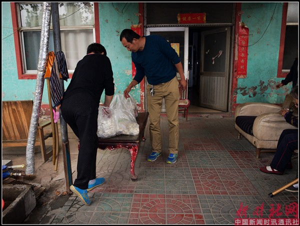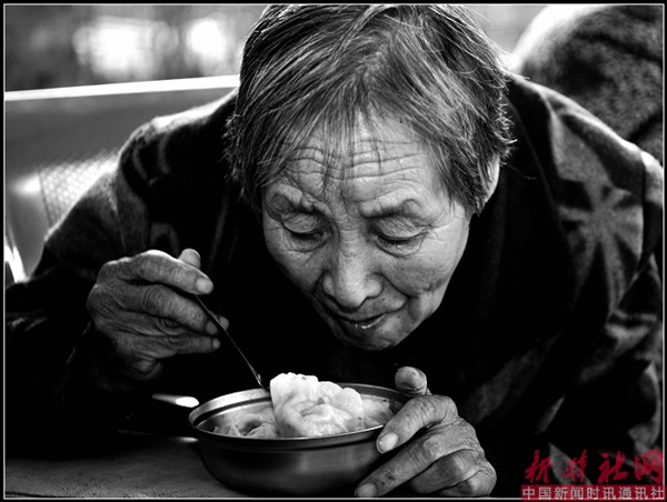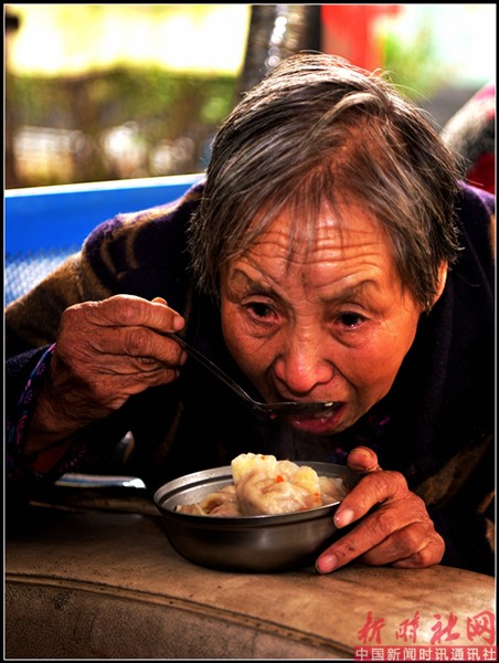 同去的朋友,为老人整理。服侍着老人吃饭。这个时候已经12点了,我们还没有吃饭,虽然也饿,但看着老人吃的很香,我们的饿和累顿感消失。