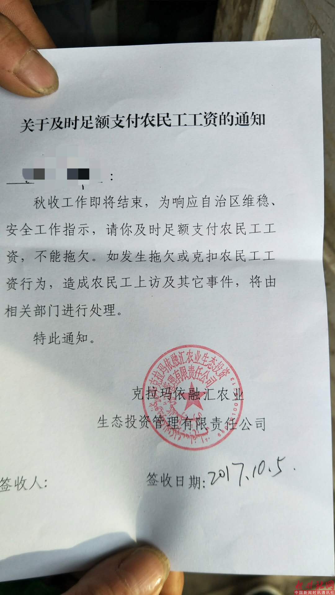 采棉工老程打工的事情应该从2013年说起,老程的老婆原本是跟着熟人过来采棉花的,经过两年的打工自己感觉在新疆的朋友圈还算有信用,每年的工资基本结清才回家,第二年就和老程商量着一起过来承包棉花管理的活当长工赚钱,老程是个典型的中原汉子,迫于老婆纠缠无奈之下先来做一年看看结果怎样再与老婆商量。虽然老程和他老婆都是年龄60多岁的人,都是老实人,老程的老婆没文化不识字,干起农活来不马虎,一晃一年过去棉花收成还不错,工资也照常结清回家,因为农民干活都是得心应手的事情,老程回到家乡就说这活没啥干,老乡们听说拔草,放水,铺地膜,打花头等等都是农民们常在地里做的事情,所以就一起商量到新疆兵团这边一起打长工,有些是夫妻一起过来,有些是一个人过来,2015年一起和老程包地管理的人就有十一个人包括短工,大部分都是60岁左右的老农民,其中有六个人工资没有结清就让他们回家了,他们的老板说到家一星期钱就到账了请他们放心回去,结果换来的是拖欠工资一拖再拖,2016年因为工资没结清,老程夫妻又来到新疆讨薪,因为老板的安慰他们就接着管理棉花地,而且还从老家喊来了刚结的亲家父母一起来管理做长工,一晃又是一年过去,到最后些日子因为老程家里变故,亲人住院老程不得不早先回家料理,亲人住院病没治好人走了,老程心情不好也没再到新疆来,老婆回家没提前通知,到下来火车出了车站才通知老程去接人,工资也不结清就买了路费就回来,人太实诚也不行,老程也没办法先回家等消息,直到过完年还是一推再推,迫于亲朋好友乡亲们的讨薪压力老程2017年又到新疆,这次没有再让老婆跟着来而是孤身一人独自到新疆边打工边讨薪,又是一年棉花开,棉花断了滴灌后有一个月的休息期,老程想回老家看看去,回家后得不到准确消息的老程只能听信主家的消息,谁知道又是骗局,棉花开的还不是太成熟主家就早早的叫采棉花车给采了一遍,得到消息的老程赶紧通知几个好友一起到新疆讨薪。