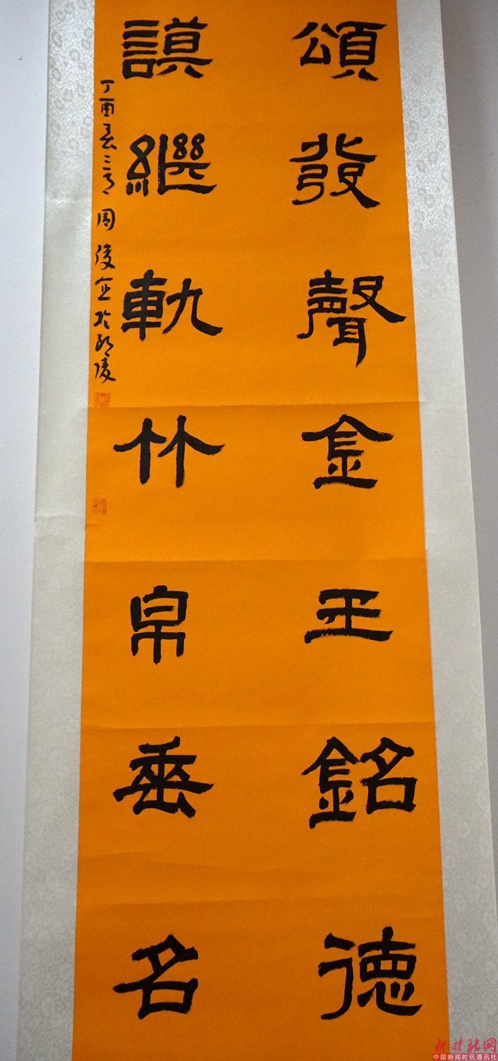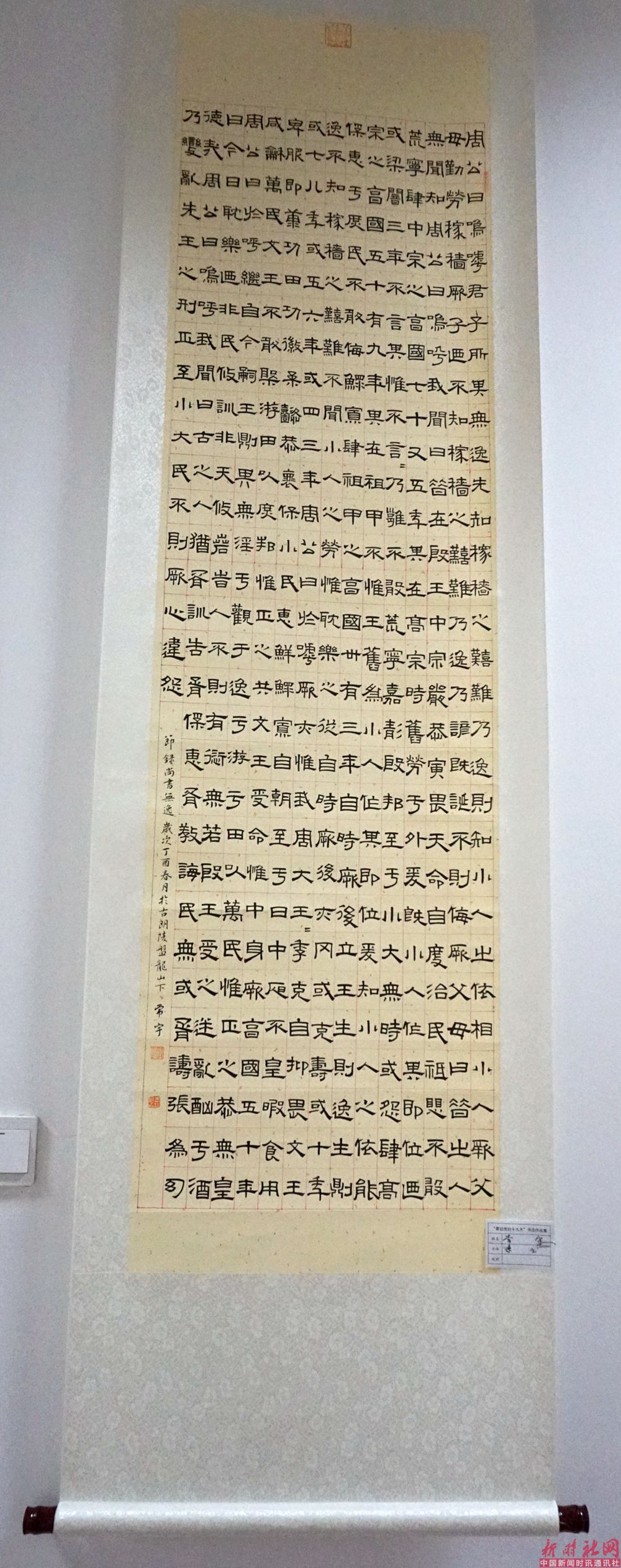 此次展览共展出作品九十余幅,楷、隶、行、草、篆五体俱全。且风格多样,书风各异。楷书端庄,展示出正大气象;篆书古拙,归真远古之绝响;草书飞动,云卷云舒;隶书厚重,端庄典雅;行书飘逸,明快舒朗。书体流畅的线条美和着神采飞扬之姿,渲染出不同的艺术效果,传递出不同的时代精神,表达出众书家对党,对祖国的赞颂讴歌!