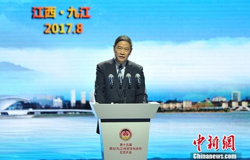 8月30日,中共中央台办、国务院台办主任张志军在江西九江出席第15届赣台经贸文化合作交流大会时表示,台商在大陆发展有很多优势,而最大优势是两岸是一家人,是割舍不断的命运共同体,两岸经济同属中华民族经济。中新社记者 刘占昆 摄