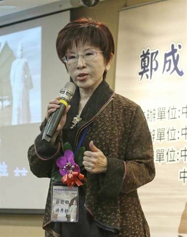 国民党前主席洪秀柱出席郑成功收复台湾355周年论坛。(图片来源:台湾中时电子报)