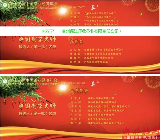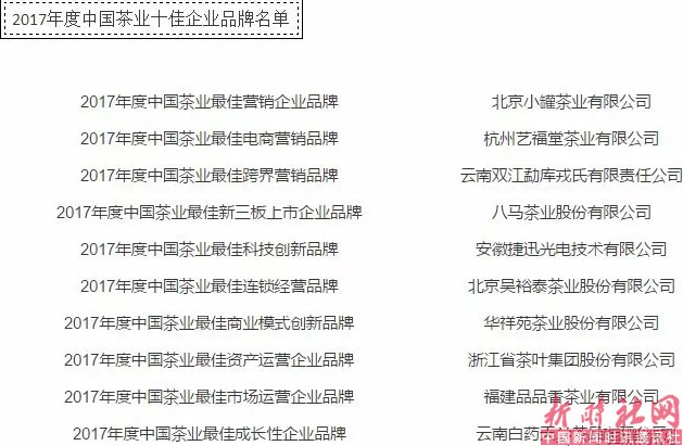 随后,中国茶叶流通协会公布了2017年中国茶叶行业调查结果,对茶业扶贫示范县、生态茶乡、最美茶乡、领军企业、十佳品牌、终身成就奖进行了授牌仪式,同时公布了全国百强企业、重点产茶县和中国制茶大师候选人(第一批)名单。