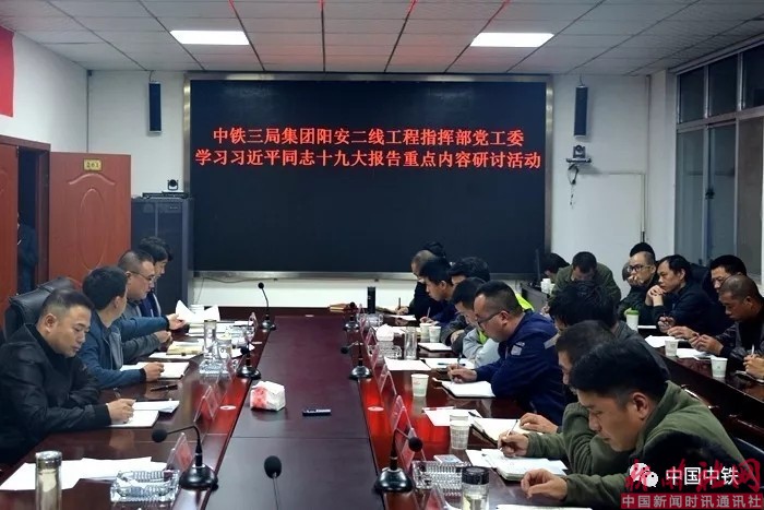 中铁一局乌市地铁3号线项目部党工委中心组 中铁三局阳安二线指挥部党工委 中铁五局四公司党委召开中心组 中铁六局党委中心组 中铁十局党委中心组 中铁大桥局党委中心组 中铁电气化局三公司机械租赁中心党委 中铁国际安哥拉分公司党工委 中铁科研院党委 中铁工业党委中心组 中铁山桥党委中心组 中铁投资京津公司党委中心组 中铁城投党委中心组 中铁四局一公司机关 中铁八局电务公司昆明指挥部 中铁九局大连分公司委内瑞拉项目部 中铁隧道局格库铁路项目部 中铁建工广州分公司依林家园项目党支部中铁北京工程局城轨公司昆明地铁项目部 中铁资源中刚建设公司召开学习十九大精神专题会