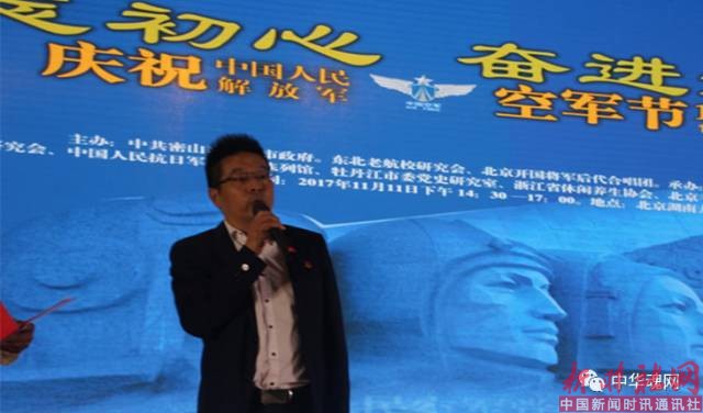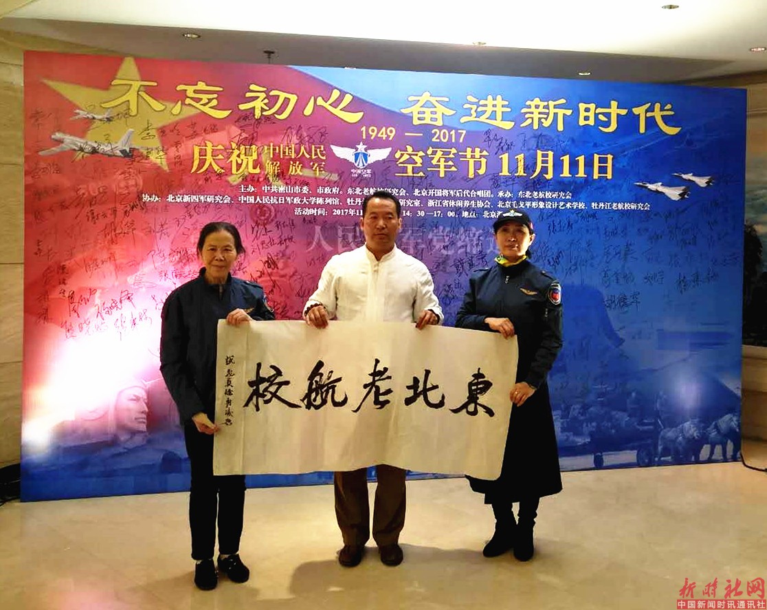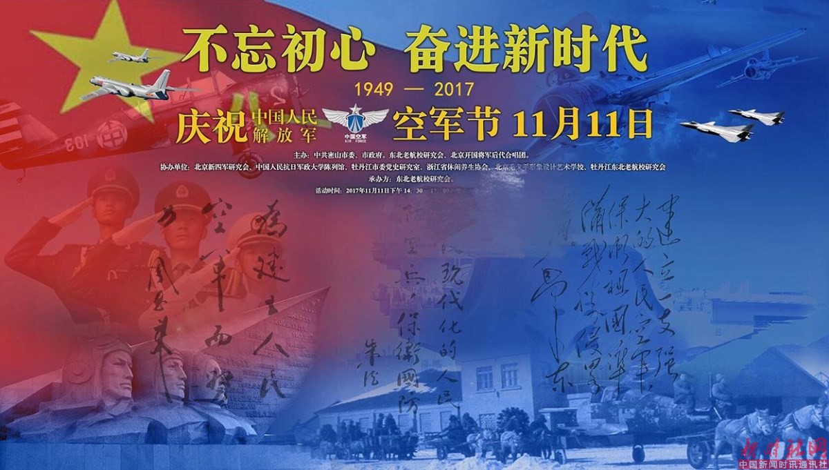 2017年11月11日是中国人民解放军空军成立68周年纪念日,由中共密山市委、市政府,东北老航校研究会、北京开国将军后代合唱团联合主办;由东北老航校研究会承办;由北京新四军研究会、中国人民抗日军政大学陈列馆、中共牡丹江市委党史研究室、浙江省休闲养生协会、毛戈平化妆学校北京分校、牡丹江老航校研究会等单位联合协办的“不忘初心、奋进新时代,纪念中国人民解放军空军成立68周年纪念活动”在首都北京湖南大厦隆重举行。此次纪念空军节活动由东北老航校研究会副会长、空军将军刘善本之女刘江平和原北空文工团张梓峰联袂主持。