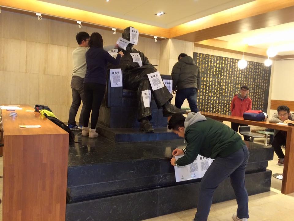 学生抗议政大存有蒋介石铜像。(图片取自台媒)