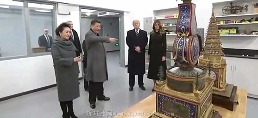 (特约记者趙志丹文献报道)国家主席习近平和夫人彭丽媛2017年11月8日下午与来华进行国事访问的美国总统特朗普和夫人梅拉尼娅共同参观故宫博物院文物医院。