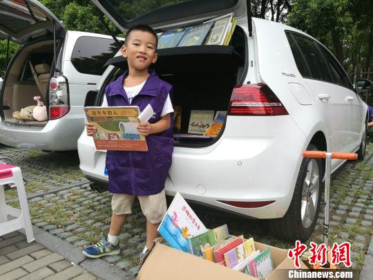 7岁的胡修齐在卖自己幼儿园时的小人书,半小时就卖出了8本。 钟升 摄