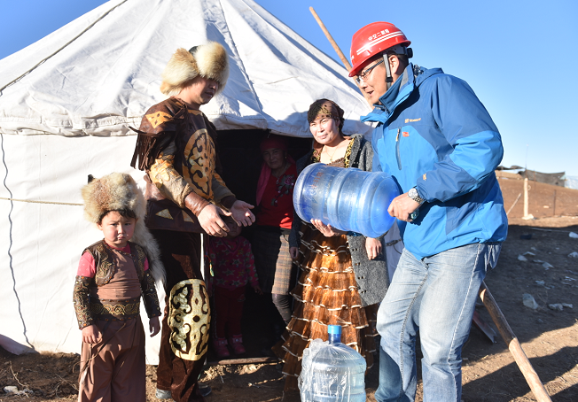 “艾买尔大爷很善良,他家的马我们随便骑,骑完后往马棚一系,添点草料就可以了。”陈成说,“为了表达谢意,我们给大爷送去了纯净水和米面,老人家非常感激。”