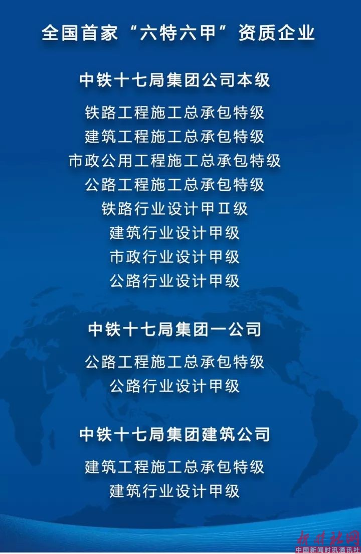 十七局集团成为全国首家拥有6项施工总承包特级资质、6项行业甲级设计资质的企业,充分展示了作为“超级工程”建设者的强大实力,为进一步提升市场开拓能力和品牌竞争力,开展高端经营具有重要意义。