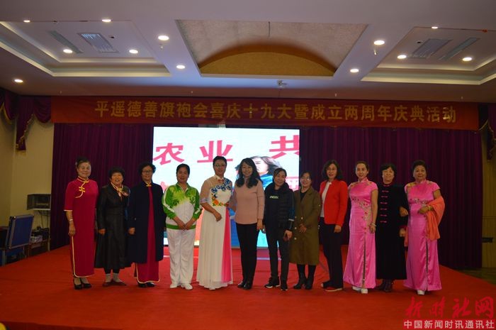 山西站采编部杨文阁.张晓梅.张金梅报道:2017年11月6日,平遥县德善旗袍召开了喜庆十九大暨成立两周年庆典活动,并召开了平遥县德善旗袍第一次妇女代表大会,选举产生了德善旗袍妇联组织,这标志着平遥县德善旗袍会有了自己的妇联组织,又一新型组织中有了自己的妇联组织,参加这次会议的有原政协主席师云香、平遥县妇联主席柳虹、副主席赵润萍。