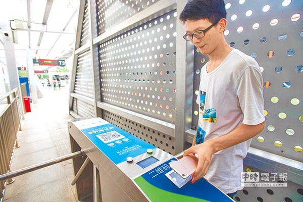 武汉BRT武昌站,乘客刷手机搭车。(图片来源:台湾《中时电子报》)