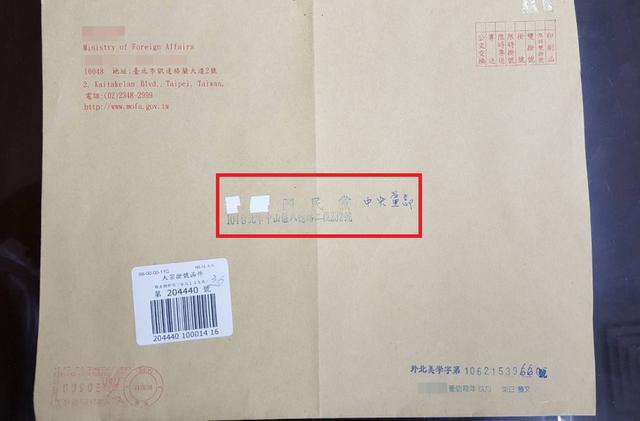 台当局所谓外交部寄来的公文信函,信封上收件人一栏,原本是印着中国国民党等字,结果却十分突兀地,被人以修正带把中国两字涂抹掉,让国民党十分不满。(图片取自台媒)