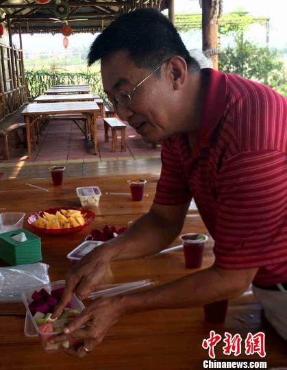 一番劳作,如今已换来收获。他向中新网记者展示了当季的时令水果,有芭乐、火龙果、百香果等;还不忘指点记者,品尝的时候要把火龙果放在最后,因为他所产出的火龙果甜度特别高。