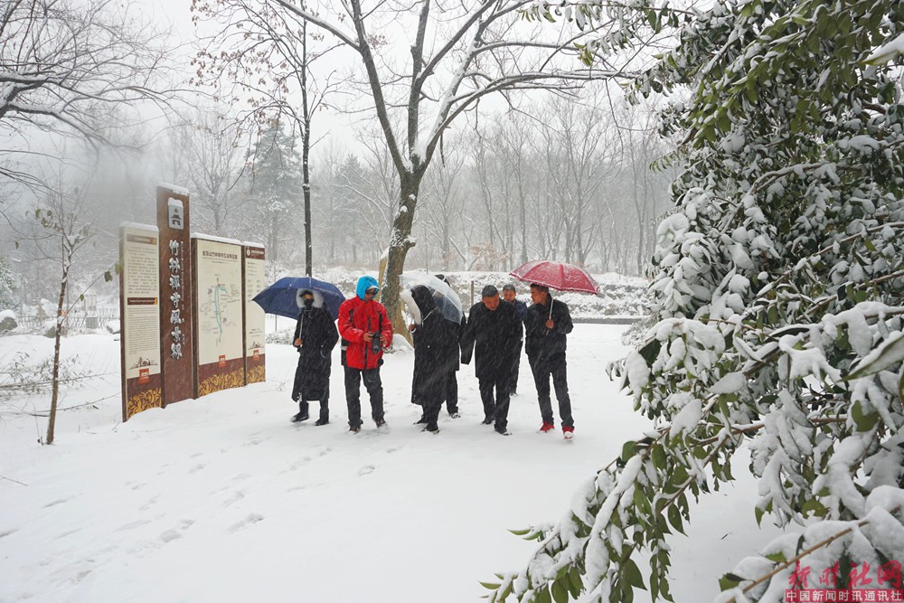 金顶山景区刘中坡总经理在赏雪的同时,不忘景区员工的素质教育,身先士卒,顶寒冒雪,在陈昱昊主任的组织下,在景区一道门、二道门开展丰富多彩的傲霜斗寒意志拓展训练。