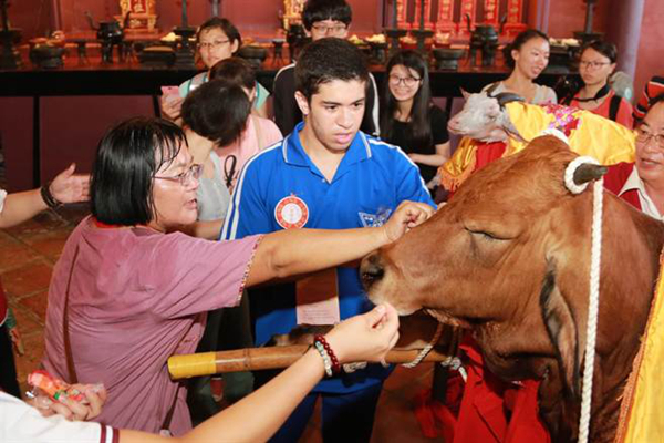 庄严祭典后,以面支撑的牛、羊、猪造型智能糕祭拜,领取智慧糕等同于拔智慧毛,象征增长智慧,民众等候多时想求得智慧糕,祈求学子增长智慧、学业进步。