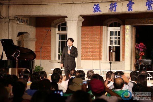 赖清德全程用闽南语致词,不忘提到蔡英文的两岸政策主张。赖清德说:蔡英文说过如果当选台湾地区领导人,她就要来听音乐会,这个行动我们可以用她两岸的主张来形容,就是善意不变、承诺不变,也没有在时间的压力下来屈服。