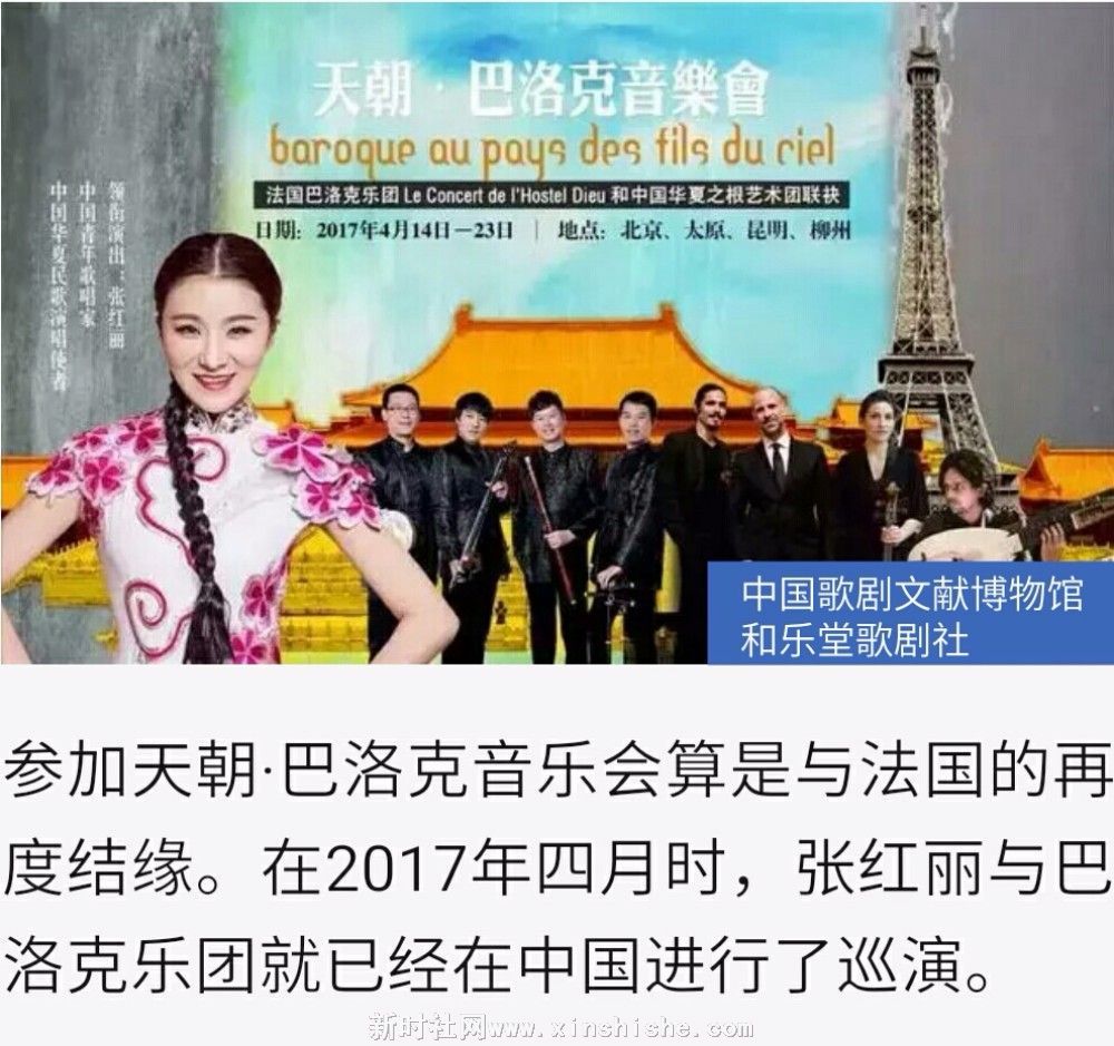 参加天朝·巴洛克音乐会算是与法国的再度结缘。在2017年四月时,张红丽与巴洛克乐团就已经在中国进行了巡演。