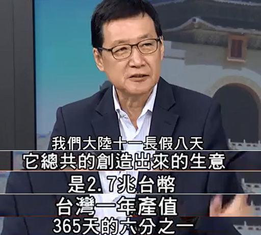 国民党立委费鸿泰就说了,大陆一个黄金周就能创造出2.7兆的产值,这可是台湾一年16兆产值的六分之一啊!