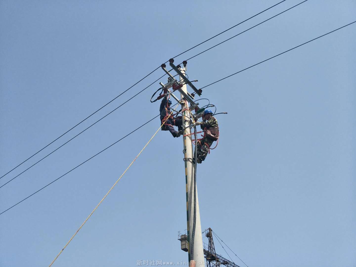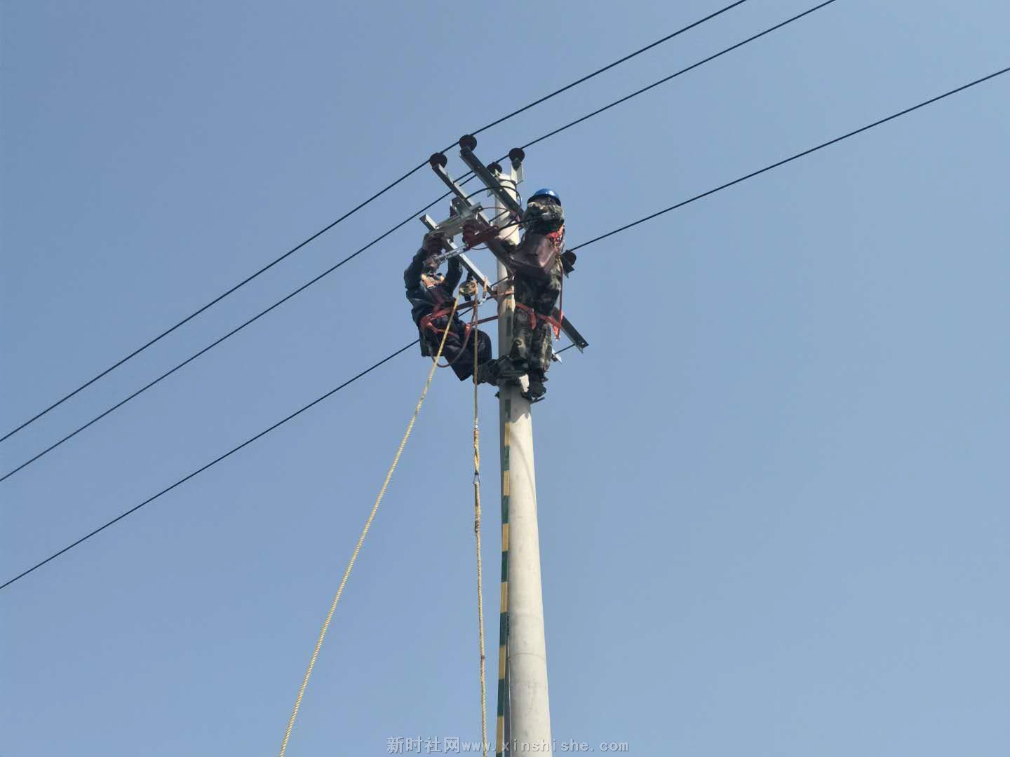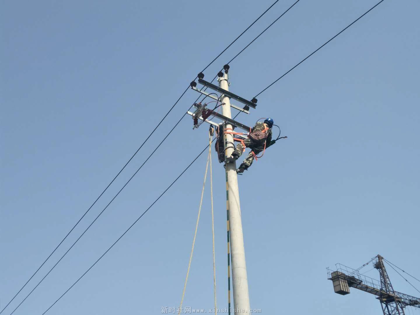 客户急需用电,作为服务单位我们要当好人民的坚强后援,您看高空上的舞者动起来了。