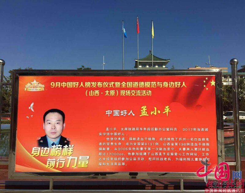 山西站采编部讯 他,是孟子第75代“祥”字辈,全国第6121例、山西第136例非亲源造血干细胞捐献者。他就是太原车务段后勤司机班共产党员、“中国好人”荣誉获得者孟小平。他,为了实现自己的承诺,挽救一名骨髓增生异常综合症患者垂危的生命,婉拒了远在苏州患者家属在山西医学院第二附属医院周边为他安排的宾馆,还是他,婉拒了患者女儿托红十字会工作人员送来的5000元慰问金。他用大爱无疆的精神谱写了一曲社会主义新时代感人的新篇章。他以一名共产党员的标准践行着社会主义核心价值观和自己的诺言!他以共产党员的实际行动“勇于担当复兴大任,争做时代新人”的道路上迈出了坚实的一步。