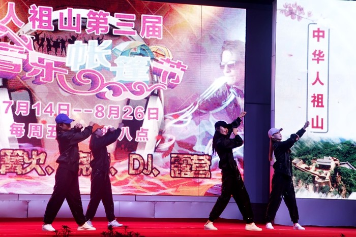 晚会在一曲优美动人的古典舞蹈中拉开帷幕,随后著名摇滚歌手凯为大家带来了激情澎湃的歌曲演唱;特型演员阿飞也用自己独特的表演展示了不屈于命运的精彩;还有来自东北的著名二人转演员,逗趣诙谐的表演带你感受来自喜剧之乡的欢乐氛围;国家二级演员,人祖山演艺团指导胡翠英老师也为大家带来了人祖山原创歌曲《忘忧草》,悠扬的旋律和甜美的歌喉让人听之欲醉、闻之忘忧;热辣性感的女子舞团引起了大家此起彼伏的欢呼尖叫,将现场气氛推向了高潮......
