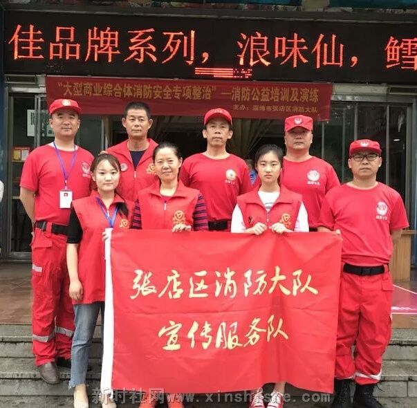 淄博市张店区消防大队宣传服务队、淄博红箭公益队员到中心路利群购物中心开展消防安全培训及灭火演练活动