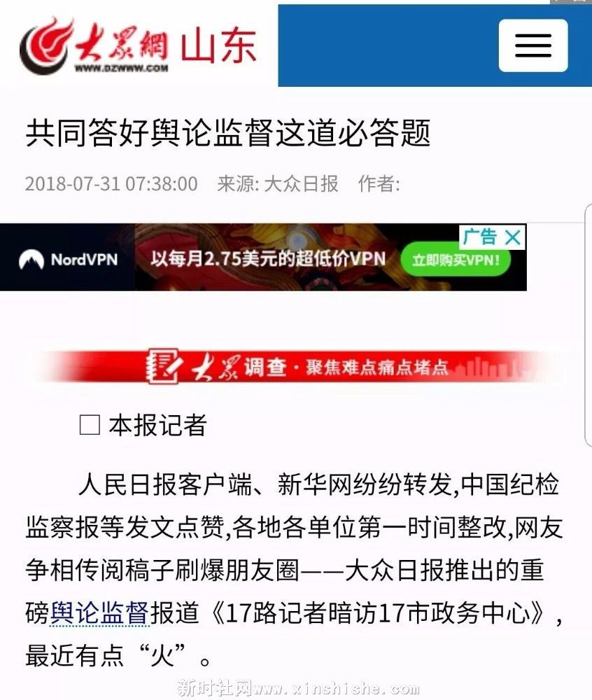 7月26日,大众日报重磅推出舆论监督报道《17路记者暗访17市政务中心》,同一天,山东卫视的《山东新闻联播》播出两条不作为、乱作为的监督报道,之后,山东媒体曝光烟台市民为母亲办理疾证被怼,当地立马将涉事人员辞退。